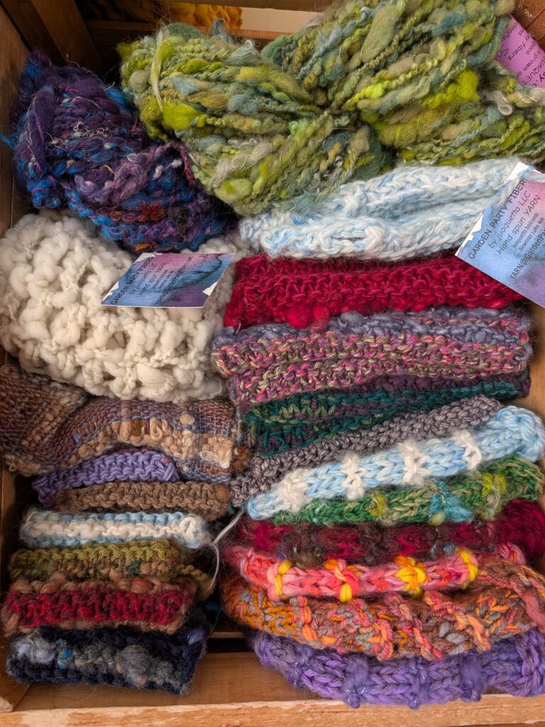 Garden Party Fibers: Garden party fibers has knit a bunch of hats, mitts, ear warmer and shawls. Handspun yarn from local critters.